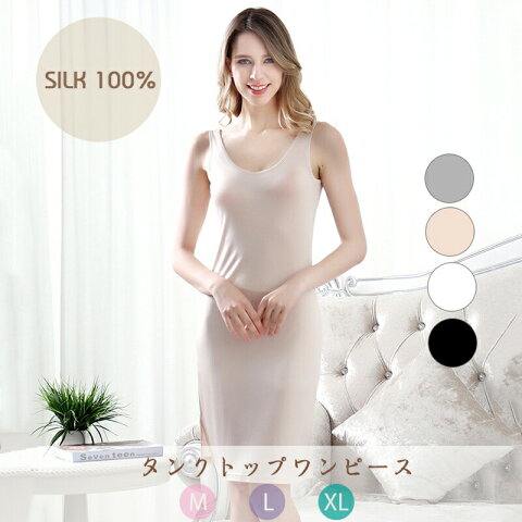 タンクトップワンピース メール便送料無料 シルク シルク100% 2WAY インナー タンクトップ ワンピース ペチコート スリップ ランジェリー 汗取り 吸汗 速乾 温活 防臭 絹インナー 保湿 通気快適 敏感肌用 母の日 【楽天月間優良ショップ】