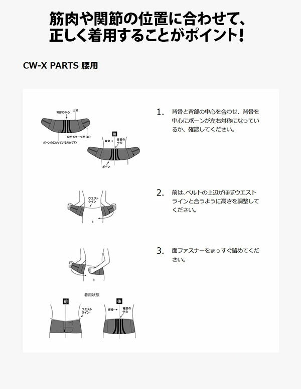 ■商品コメント CW-X ワコール Wacoal サポーター 腰用 婦人・女性用 CW-X PARTSは、CW-Xのスポーツタイツの機能を応用し、カラダの気になる部位に合わせてセレクトできる新発想のサポーターシリーズです。